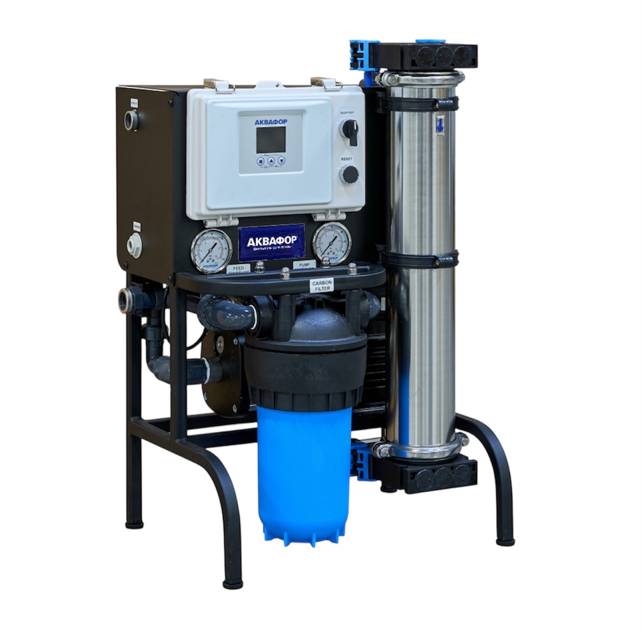 Система обратного осмоса APRO SST производительностью до 150 л/ч предназначена для очистки воды от солей жесткости, содержанием до 2000 мг/л, хлоридов, органических веществ, бактерий и вирусов. Энергоэффективная компактная система является отличной альтернативой системе засыпных фильтров для очистки воды в коттеджах и загородных домах. Установка успешно используется в коммерческом и промышленном сегменте: в ресторанах, лабораториях, тепличных хозяйствах; в промышленности для малых технологических процессов, для паровых котлов, парогенераторов и т.п.